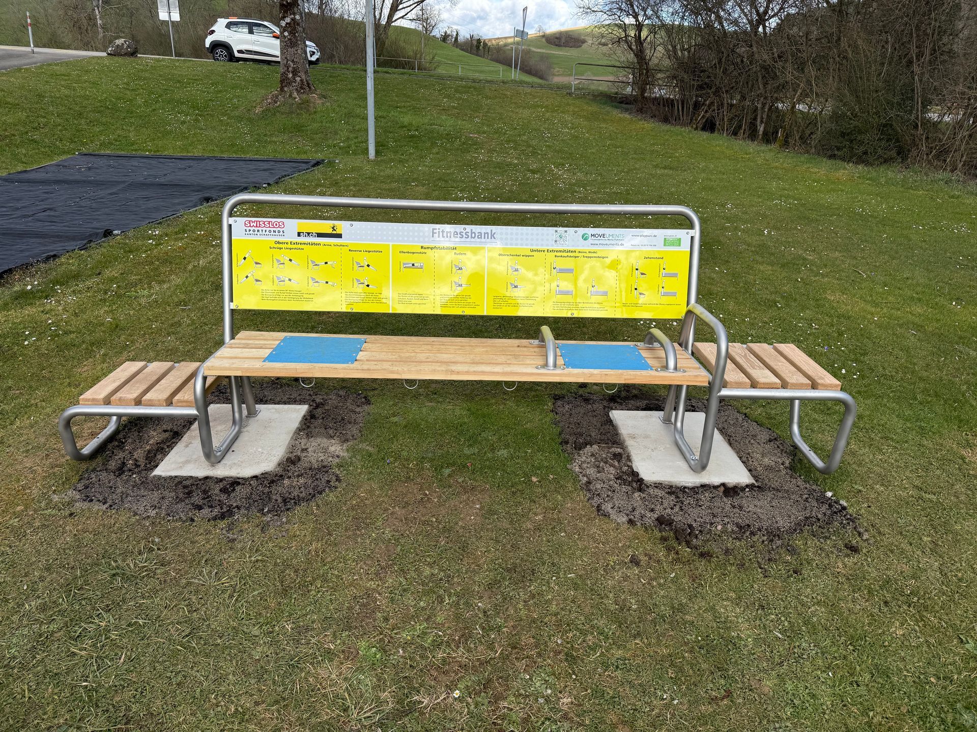 Bei der Reiatschule Hofen, neben der Turnhalle steht ab sofort für die Bevölkerung, dass heisst, für alle Fitnessbegeisterten unsere neue Fitnessbank zur Verfügung. Die neue Bank wurde vom Kanton Schaffhausen, Fachstelle Sport, für uns im Unteren Reiat zur Verfügung gestellt.