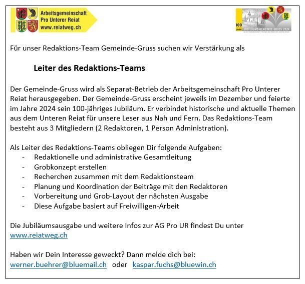 Die Redaktion vom Gemeindegruss braucht Verstärkung!