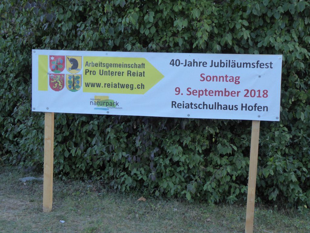 Jubiläumswanderung, Reiatschnäggli, Naturpark SH, neuer Reiatfilm, Tiere und Traktoren, Musikverein Büsslingen, Ausstellung Gewerbe, neue Reiater-Bauernbratwurst, Labelübergabe Naturpark, Jubiläumsakt, Kirchenchor Opfertshofen, Kinderspiele, Zollmusik Schaffhausen, neue Wanderkarte, neue Informationstafeln, Dorfvereine, Musikverein Thayngen, Schweizer Pärke, Mittagessen, Marktstände, Bilderausstellung, News der Arbeitsgemeinschaft, und....